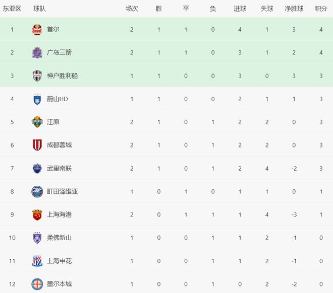 随着海港1-1绝平广岛,蓉城1-0,亚冠最新积分榜:中超球队夺首胜