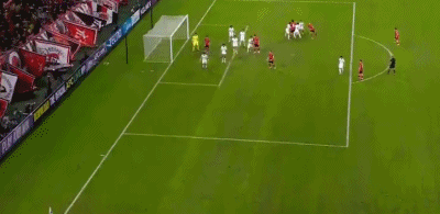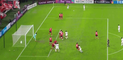 第16分钟,洪喆任意球直接射向近角,球稍稍偏出